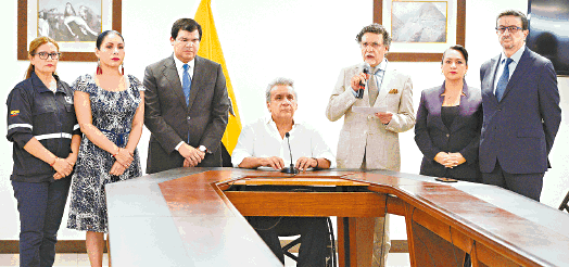 政府宣佈進入緊急狀態,在主要國家設施、政府建築物和重要基建附近實施宵禁,又要求聯合國和羅馬教廷介入調停。莫雷諾在電視講話中指有人試圖發動政變,決不退讓,呼籲以對話解決危機,又指前總統科雷亞與委內瑞拉總統馬杜羅在背後聯手破壞國家穩定。