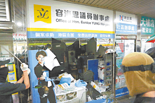 大埔超級城內的Starbucks及優品360、大埔寶湖商場內的中國旅行社同樣被噴漆塗污。觀塘裕民中心中旅社被縱火,由商場職員救熄;大圍道中銀亦被掟汽油彈。傍晚6時許,示威者去到大埔汀角路榮暉花園商場內的立法會議員容海恩辦事處破壞,有人想打開大門但不成功,示威者破壞後沒進入辦事處,現場遺下大堆玻璃碎。