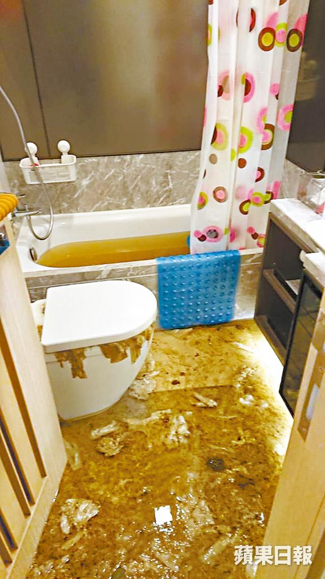 等待近年半,單位今年1月正式收樓,業主簡單修葺幾處小問題就入住。惟好景不常,與海之戀的「蜜月期」只有短短3個月,今年5月時單位爆出驚人的屎渠倒灌事件,污水由馬桶及浴缸湧出,並浸滿全屋,一屋傢俬電器無一倖免。業主當時身處澳洲,全屋被屎水浸足幾日才被揭發。