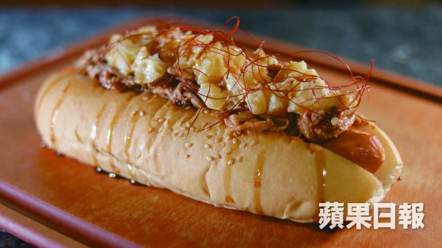 曾接觸中、西及日本菜的家豪,以本地豬肉創作了三款熱狗,當中銷量最高的是「黑啤肉醬」,「自己喜歡喝黑啤,有次煮紅酒肉醬時便忽發奇想,用黑啤煮又是否可行?發現黑啤的麥香在加熱及蒸發後,和豬肉很匹配,且除去了啤酒本身的澀味,推出後很受客人歡迎。」至於另一款「黑糖蘋果手撕豬」被家豪稱作「女士至愛」,該餡料由水𦟌醃製後加入秘製燒烤汁燜煮一小時而成,再以人手撕成肉絲,工序繁多,「手撕豬要嫩而不肥一定要用水𦟌,配以用肉桂及焦糖煮過的蘋果和黑糖醬汁,味道酸甜較開胃。」