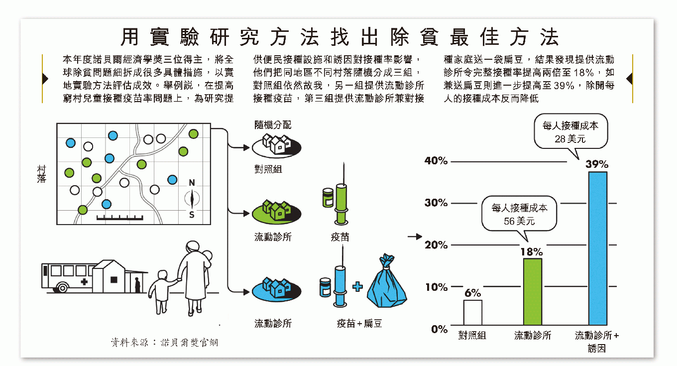 二次大戰後全球致力除貧,但貧窮始終除之不盡,到底甚麼方法才能最有效除貧?本年度諾貝爾經濟學獎的三位得主,以實地實驗的方法解答這問題,評估具體除貧措施的成效,評審指他們除了改變發展經濟學的治學作風,亦「顯著改善我們全球除貧的能力」。
