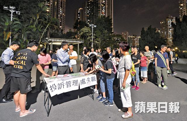 事件惹居民強烈不滿,逾百居民昨晚召開居民大會商討對策,管理處及當區區議員林發耿拒絕出席。居民聯署向管理處投訴,目標集齊200個業戶簽名,召開緊急業主大會檢討事件。被捕的街坊王先生於大會上指,當日只是「行前少少、大聲少少」就被拘捕,更被警察言語辱罵,他呼籲街坊不應「斬腳趾避沙蟲」刻意避開警察宿舍,應聯署迫使管理處正視問題。
