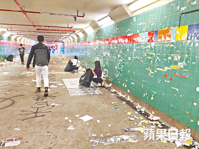 【本報訊】自6月開始的反送中運動,大埔連儂隧道為民間抗議行動的象徵之一,過往亦發生多次因撕紙問題而引發衝突。有區議員透露,當局已計劃明日在上址大清洗,但是有超過百名操普通話人士,昨清晨急不及待到來大肆破壞,有人更手持武器喝罵街坊,牆上文宣幾近被清走,海報、紙張等散滿地上。