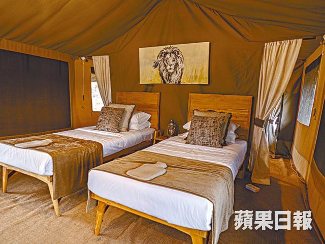 記者選擇在中部逗留兩天,入住Nyumbani Collection豪華Glamping體驗,營地在去年開幕,靠近小山丘,只有八個豪華帳幕,帳幕非常寬敞,最多可入住三人。Nyumbani代表家的意思,職員非常細心照顧每一位客人,不同木製家具擺設,感覺豪華。入夜出入使用對講機,提供雨靴及暖水袋等貼心服務。很多人也好奇草原的食材是怎樣運送處理,記者便闖入他們的廚房,一探究竟。擺放急凍肉類的雪櫃由太陽能發電,不怕停電。麵包由廚師親手焗製,每天新鮮出爐,最多保存兩天,剩下來便製作蛋糕餅底。蔬菜一星期運送一次,擺放在一個自家製的碳櫃內,日間在碳櫃上淋水達至天然冷凍效果。