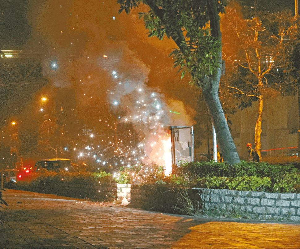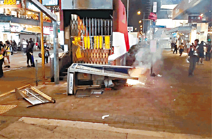 香港仔海傍道晚上兩邊行車線受阻,約30至40黑衣人在場,其後警員到場驅趕,有人在橋上投擲起火雜物,警方發射一枚催淚彈及一發不知名子彈,圍觀群眾隨即四散。
