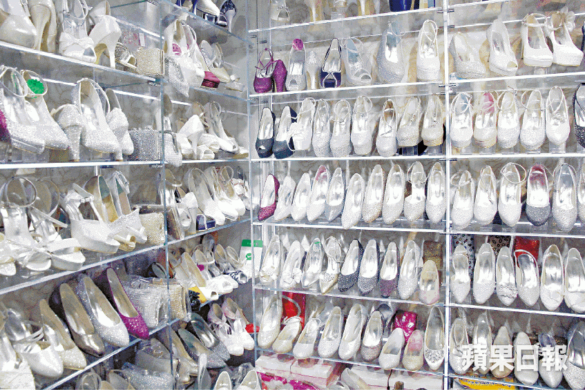 天麗鞋屋的店面位於旺角金都商場地下,在約200呎的丁方小店內,鞋子有逾百對,貨架上滿滿的婚鞋散發着閃光,平底至9吋高跟,只要客人要求,鞋跟還可再加高,只因天麗多年前已於內地設有鞋廠,為客人度身訂做鞋子。訪問當天,東主黃文輝(61歲)匆匆由肇慶回港,「呢對係造畀阮兆祥嘅,畀佢演唱會着,佢公司係咁催我呀!」