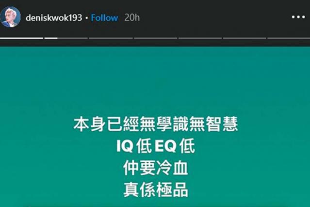 及後本港多區有悼念周同學活動,最後演變成防暴警察出動,在清場時疑稱呼示威者為「曱甴」,又向示威者大叫「今日開香檳慶祝呀!」193其後轉發相關報道,並留言鬧爆:「本身已經冇學識冇智慧,IQ低EQ低,仲要冷血,真係極品。」