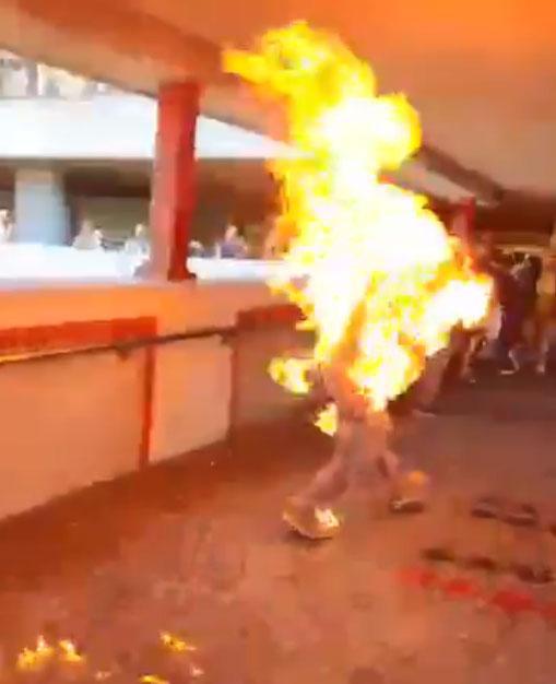 【本報訊】本月11日三罷期間,馬鞍山一名中年漢疑在馬鞍山站跟黑衣人爭執,他追趕至天橋,復跟其他市民口角,其間被一名黑衣人淋上不明液體及點火,嚴重燒傷。事隔一周,警方拘捕一對夫婦,指稱他們旁觀事件期間講粗口,控以一項在公眾地方作出擾亂秩序的行為罪。案件昨提堂。