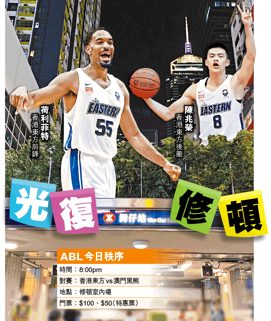 香港交通大致回復正常,球迷外出自如,東南亞職業籃球聯賽(ABL)在月中開鑼,大換血的香港東方終可如期於今晚八時出戰首場賽事,在主場修頓室內場迎澳門黑熊,新帥白蘭特誓領藍軍爭開門紅。(有線661台今日8:00pm直播)