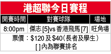 【本報訊】傑志今晚8時旺角場上演的港超聯2019最後一戰,新兵暫未能上陣下,求再破有文迪斯及查理士兩名外援離隊的香港飛馬,繼續追趕前列隊伍。