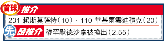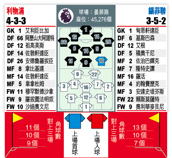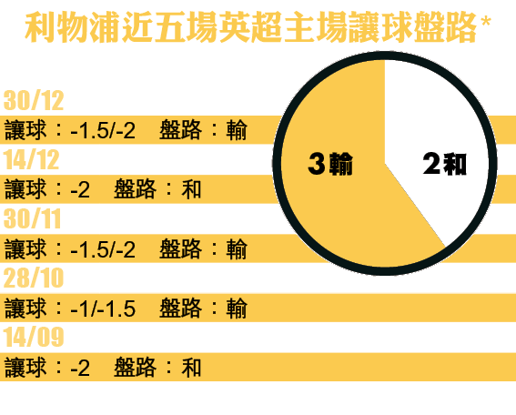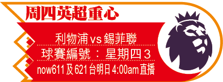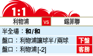 從世冠盃返回英超累積兩連勝的利物浦,周四主場鬥韌力強的錫菲聯,估計要贏也不易。況且,紅軍今季面對英超中型班球隊,經常贏波輸盤,因此錫菲聯受讓球半/兩球,下盤可一試。