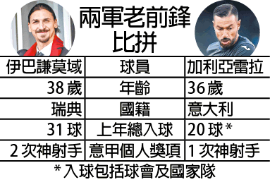 今場比賽除了有機會見證AC米蘭的伊巴謙莫域上演回巢「地標」戰外,對手森多利亞也有一位「老人家」,就是今月31日即將37歲的意大利前鋒加利亞雷拉。