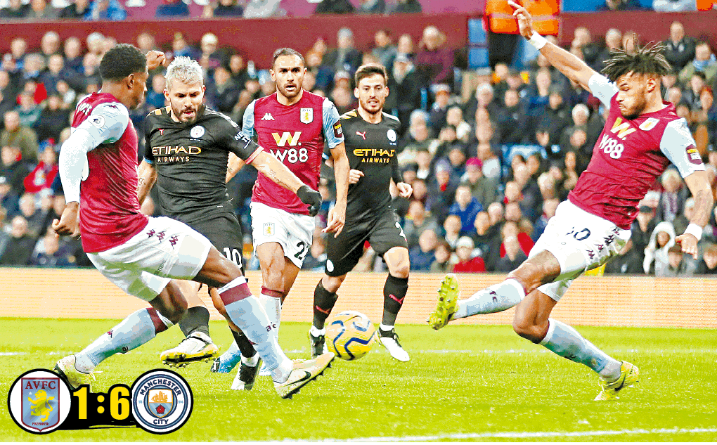 曼城延續強勢,在周日的英超作客以6:1血洗阿士東維拉,賽後以兩分之差力壓李斯特城重返次席,儘管希望渺茫,仍繼續追趕榜首利物浦。隊中射手阿古路今場更大演「帽子戲法」,以177個英超入球超越阿仙奴名宿亨利,成為累積最多入球的英超外援。