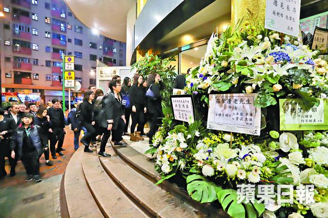 【本報訊】上周二離世、享年90歲的裕泰興創辦人羅肇唐(人稱九叔),昨晚於香港殯儀館設靈。現場所見,靈堂外圍佈滿各界致送的悼念花牌,數量多達約300個。
