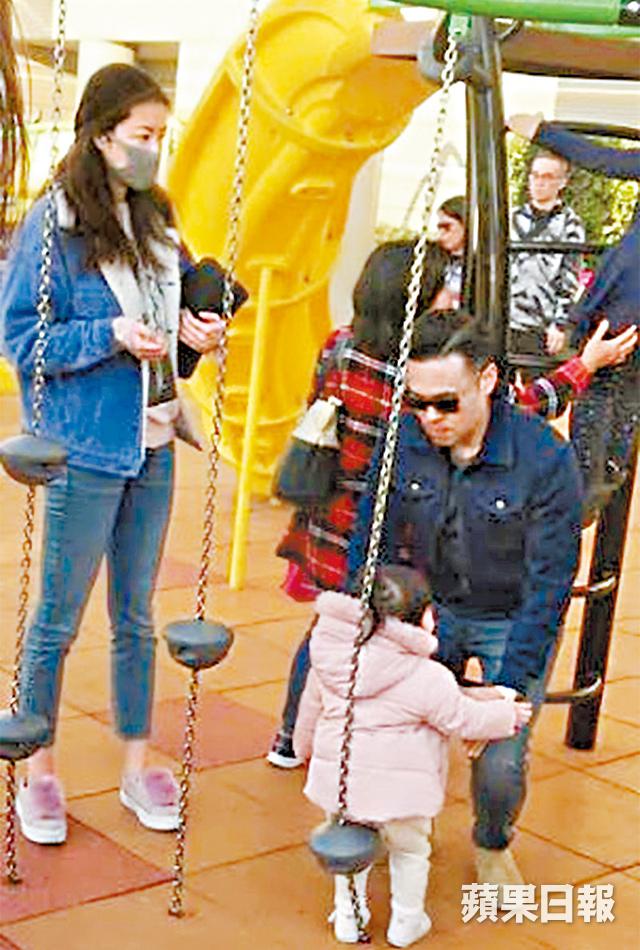 【爆相爆片】熊黛林(Lynn)2016年嫁給郭可盈胞弟郭可頌,前年誕下孖女Kaylor和Lyvia。《蘋果》讀者尹小姐日前透過「爆相爆片」,分享Lynn夫婦帶孖女到山頂遊樂場玩樂的相片。當日素顏的Lynn戴上口罩,一身牛仔打扮,郭可頌則戴上黑超,孖女穿上同款粉紅色羽絨外套,同行有一位長者和外傭,四大兩小出動。Lynn和老公負責湊着其中一名女兒,另一名由外傭及長者照顧。
