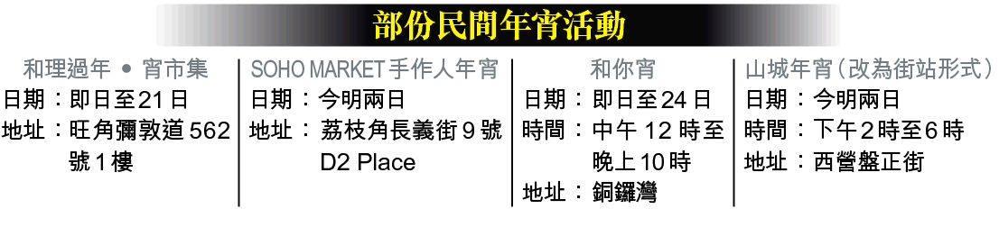面對各種打壓,民間仍堅持和你宵。山城年宵改為以街站形式進行,原有檔主之一、本地藝術家Miss FAT仍會帶作品參與年宵,「我身為本地藝術家,我好希望自己作品可以記錄香港發生過咩事」。首飾網店Badasu店主Aliz會參與觀塘流動年宵活動,透過文具店、玩具店、裁衣料舖買最簡單的材料製作節慶飾物。