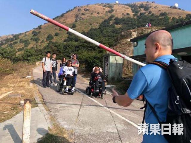 在大帽山道閘口下車後,便到達麥理浩徑第八段。閘口保安見到電動輪椅人士後,主動開閘讓電動輪椅經過。