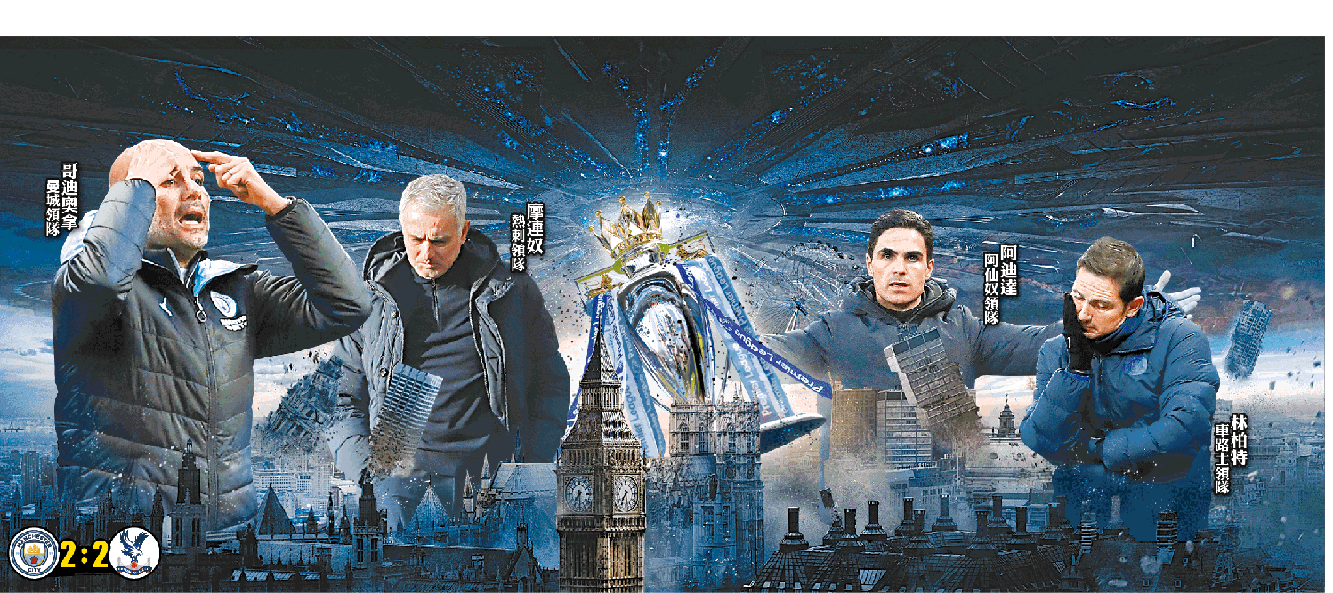 上周六英超成為「Big 6災難日」,早場熱刺,與隨後的曼城及阿仙奴相繼和波,到壓軸車路士作客紐卡素更遭絕殺,登場的四支球隊全部失分。其中曼城主場迎水晶宮,戲劇性地於比賽末段連入兩球反超前,卻在完場前輸烏龍球遭逼和2:2,領隊哥迪奧拿非常無奈,再次示弱指藍月今季英超的最重要目標,只是守住前四。