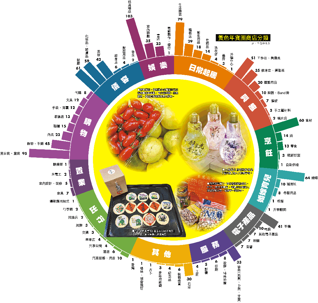 黃色經濟圈越打壓越壯大。根據網上黃藍地圖資料庫,除了1,500間黃色食店外,亦有超過1,200間黃色商店,涵蓋文具到時裝、外傭中心到升學顧問、香燭到婚嫁等最少70多種商品和服務,照顧到絕大多數生活所需。鼠年將至,同行兒女辦年貨都不愁選擇,無論生果、年花、禮餅、海味等,都有同聲同氣的商戶,讓大家新年可以繼續「黃到金」。《蘋果》訪問四間由初夏至寒冬,一直與港人齊上齊落的年貨舖頭,聽聽他們在動盪時代中的經營故事。記者:關冠麒