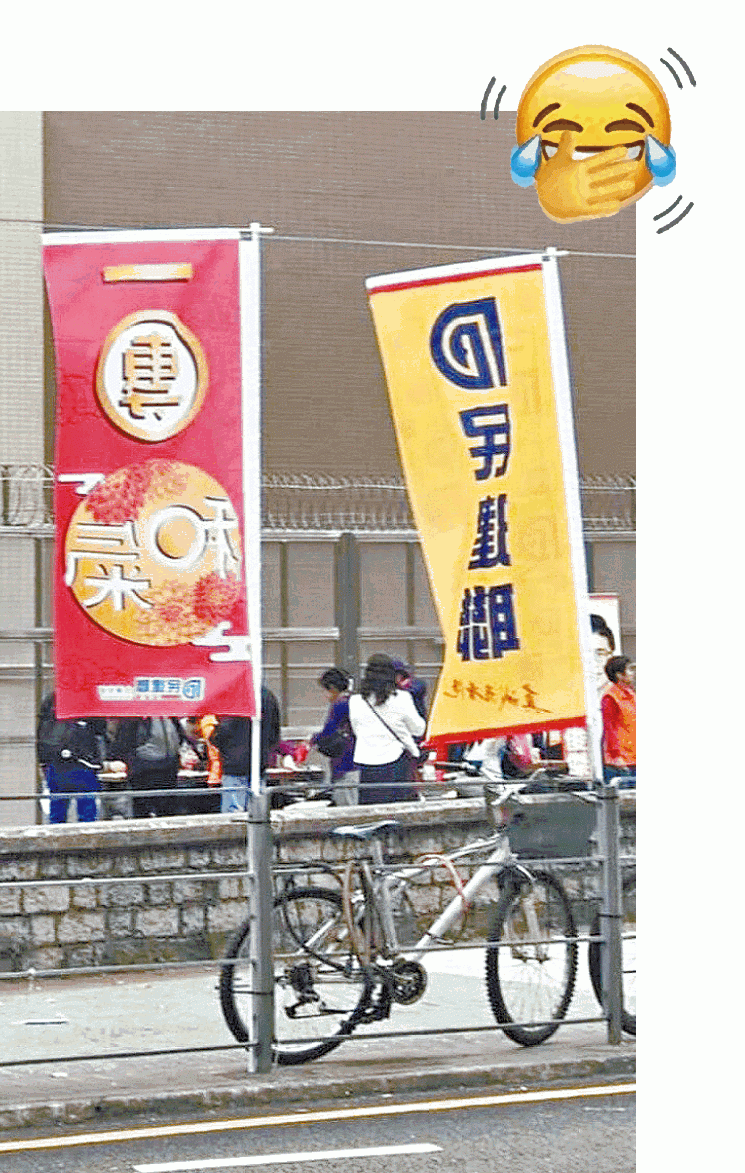 同手足文宣相比,藍絲、建制文宣,即使用幾多錢做,始終有種土味,最近更變成有「屎味」!日前有網民發現民建聯喺街掛嘅「一團和氣」賀年直幡,原本咁睇冇乜問題,但係背面睇,「和氣」兩隻字變成好似「屎味」字樣,原本祝市民「一團和氣」變成祝市民「一團屎味」,真係倒米!不過又有網民話,其實「一團屎味」幾啱民建聯呀,佢哋只係講出事實真相!
