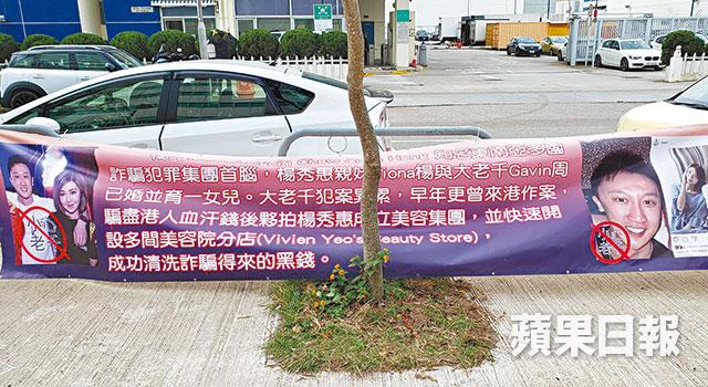 楊秀惠的妹妹楊秀靈和妹夫Gavin昨日被人在將軍澳電視城外拉上大橫額,涉及金錢問題。內容主要針對楊秀惠胞妹夫婦,而楊秀惠的美容生意也牽涉在內。