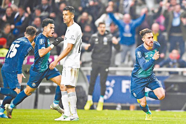 周三葡聯盃,波圖作客甘馬雷斯在先失一球下,靠阿歷士迪尼斯(右)火速扳平,最終反勝對手晉級決賽。
