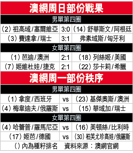 【綜合澳洲外電】上周五取得個人澳網第100場勝仗的瑞士天王費達拿,周日就以盤數3:1擊敗匈牙利球手弗素域斯,晉級八強。(now670及671台今日8:00am直播)
