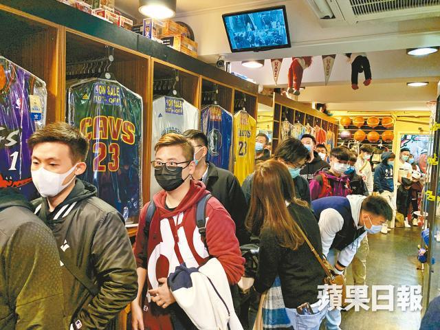 旺角NBA產品專門店「Shooting Five」昨日門外大排長龍,超過50人排隊等候入內購物。店主黃傑表示未開店已有顧客查詢Kobe產品存貨,並透露有客人花費超過5,000元購買2件落場版球衣,又指今日難為原版落場版球衣訂價︰「落場版得復刻,原版我唔敢開價,都唔知點開。」