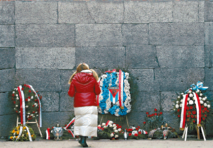 來自世界各地的200多名倖存者,披戴着象徵當年囚衣的藍白間條鴨嘴帽和圍巾,通過有「勞動帶來自由」德文標語的集中營鐵閘,回到大半個世紀前僥倖活着離開的人間地獄,先到有數以千計人被槍決的「死亡之牆」前獻花;其後再在有「死亡之門」之稱的奧斯威辛—比爾克瑙死亡營大門前參加儀式,出席的還有50多國的王室成員與政府領導人,包括德國總統與以色列總統。多名倖存者輪流發言。