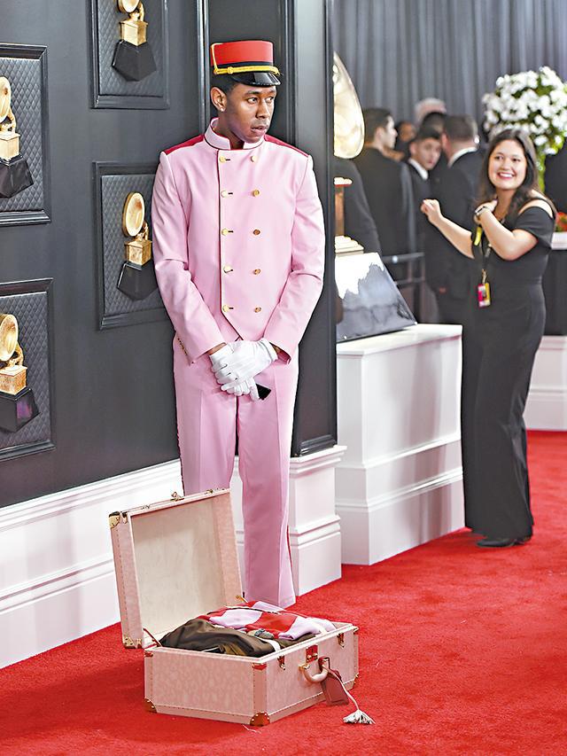 有明星靠時裝作政治表態,美國女歌手Joy Villa的造型以美國國旗為靈感,紅裙寫上「Trump 2020」撐特朗普,為大選造勢,而伊朗出身的女星Megan Pormer則穿上寫着「No War(love) Iran」的紅裙,並以兩國國旗當披肩,宣揚愛與和平。 男士方面,Billy Porter以bling bling藍色連身褲現身,水晶流蘇在帽邊、褲腳和clutch都見蹤影,由頭襯到落腳,非常搶眼。Tyler, The Creator就化身酒店bellboy,身穿自家品牌Golf Wang的粉紅拼紅套裝,還帶上旅行箱,有趣又搞怪。