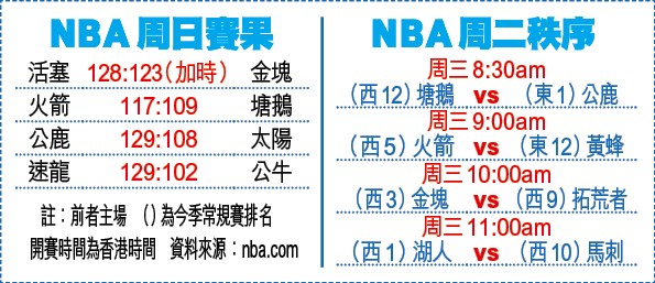 塘鵝周日作客火箭,雖有狀元錫安威廉臣(Zion Williamson、右)取得雙雙21分10籃板,惟主隊夏登(James Harden)獲準三雙40分10籃板9助攻,塘鵝最終以109:117敗陣,三連勝斷纜。另火箭為中鋒卡比拿尋求一宗三方交易以換取一名後衞。路透社