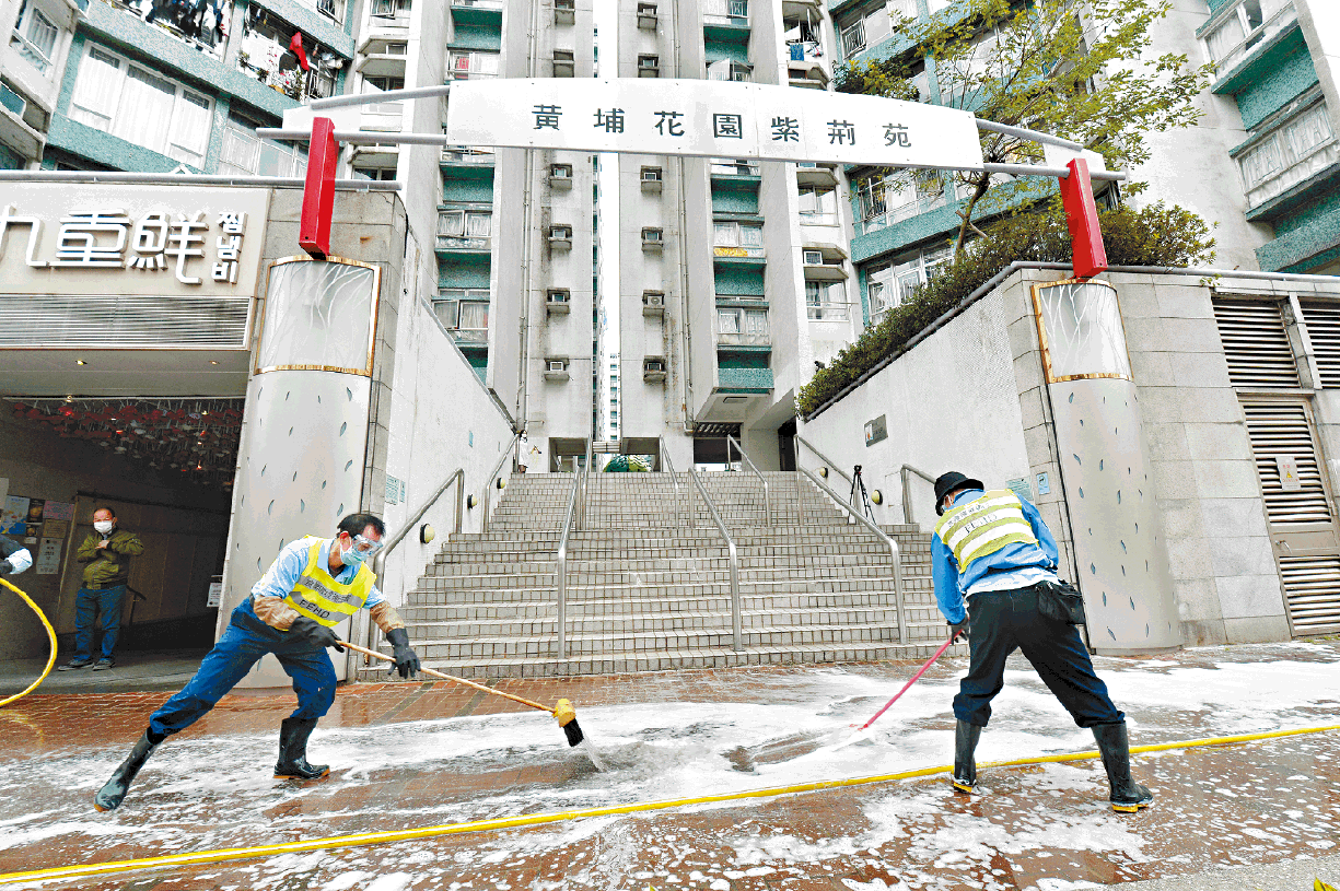 【本報訊】本港首宗確診死亡個案患者生前居住黃埔花園,死訊傳出後,屋苑住戶人心惶惶,屋苑內外均加強消毒,本報昨日所見,黃埔街坊絕大多數都戴上口罩防備,有同座住戶及保安員甚至「打孖戴」口罩以求雙重保護,甚至戴上防毒面罩。有住戶稱衞生署無主動聯絡,惟有自我隔離,更稱不介意強制全棟隔離。