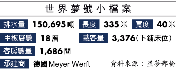 在完成兩個短線行程後,世界夢號本月2日從香港出發往台灣基隆及高雄,載有逾1,800名乘客及逾1,800名船員,展開為期四天行程,當中九成乘客為港人。