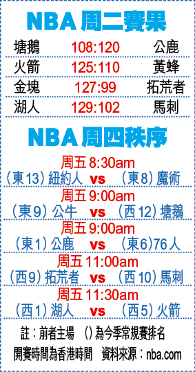 聯盟一哥公鹿今季在字母哥領軍下繼續無人能敵,一度取得18連勝的他們開季至今僅獲7敗,而且從未嘗過連敗。今季續成常規賽MVP大熱人選的字母哥身形魁梧,今仗遇上健壯的錫安威廉臣,兩人有多次對位。字母哥在身高佔優下,禁區又有中鋒盧比斯兄弟,錫安進攻變得更加困難,第二節字母哥就把狀元的單打快攻整個封下。