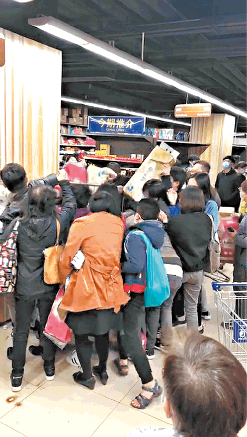 記者昨到旺角一間大型連鎖超級市場,發現傍晚有大批市民購買大量廁紙,貨架已經清空,甚至廚房紙、盒裝抽紙及包裝紙巾等紙類產品都一併被搶購,幾乎售罄。區內其他超級市場亦現廁紙搶購潮,貨架同樣空空如也。有市民見廁紙搶購一空,立即致電親友提醒外出買紙,「即刻落街買呀,俾人搶緊啦」。街坊羅女士到超級市場買廁紙但撲空,若之後家中存貨用完亦無可奈何,直言「多得林鄭唔少」。對於近日連番出現日用品搶購潮,她認為封關會令日用品價格上升,才因此有搶購問題,她希望政府盡快全面封關抗疫,但對政府維持日用品穩定方面則不抱期望。
