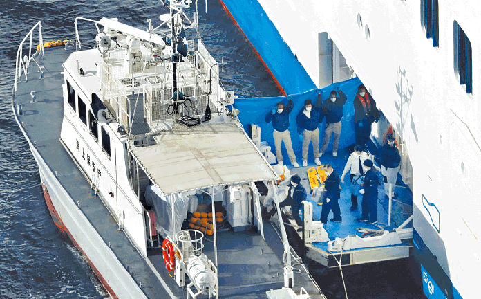 「鑽石公主號」因曾經接載武漢肺炎確診者,被下令隔離14日,現時停泊在橫濱大黑碼頭外海。當局派員採集船上273名出現發燒及咳嗽等症狀,以及曾經與患者密切接觸者的樣本檢驗,目前只有31人的結果出爐,預計仍須數天時間才能全部完成,其間船上所有人都不得離開,據知船上有470名港人。