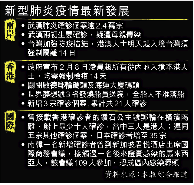 【肺炎大爆發】新型冠狀病毒疫情繼續全球蔓延,南韓昨日新增三宗確診病例,全國確診總人數增至19人,其中一名新增個案,曾到新加坡一間酒店出席國際商務會議,接觸過一名後來證實感染的馬來西亞人,該會議恐成區內感染源頭。
