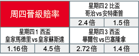 周三西班牙盃的八強賽事,西甲班霸巴塞隆拿作客對陣畢爾包。巴塞在新帥施迪安上任後,雖然成績上稍有起色,但球隊明顯未能完全適應這位新教頭的戰術。而且今季巴塞的作客成績較失色,聯賽11場作客賽事僅僅贏了4場,今仗要迎戰主場成績不俗的畢爾包,預計巴塞晉級現暗湧,讓半/一寧要下盤。