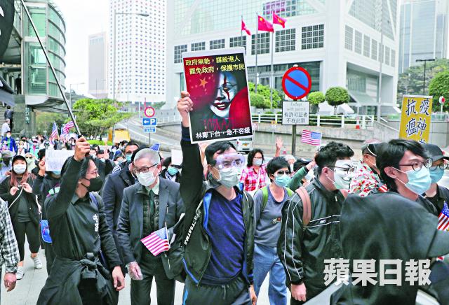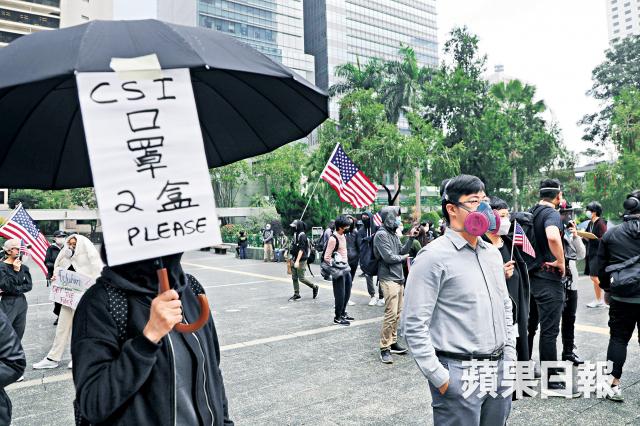 前醫護郭女士曾在內科病房工作多年,不滿政府連醫護人員的安全也置之不理,甚至徵用童軍做義工抗疫,「點解香港政府同警方要啲細路去死呀?」遊行人士將口罩掛在禮賓府外的鐵馬後和平離開。
