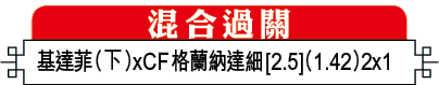 同日CF格蘭納達對華拉度列,兩軍近況一般,入球力同樣低迷,今場未必會出現入球騷,敲入球中位數[2.5球]的「細」。(球賽編號:星期六62;now632台明日4:00am直播)