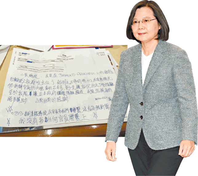 該男乘客擔心到寫信給蔡英文,而其父最終確診感染,昨天收到日本當局通知安排住院。他表示會勇敢面對,也感謝台灣政府的幫忙。