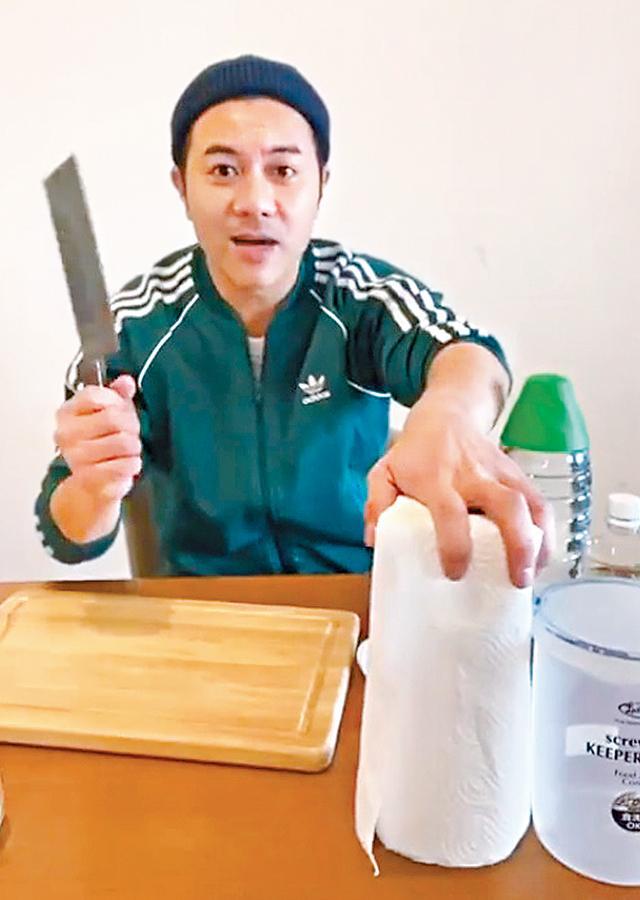 梁漢文眼見在武漢肺炎肆虐下,全城瘋狂搶購口罩和搶消毒用品,於是前日在社交平台變身「消毒大使」,留言表示非常時期用非常方法,更拍片教大家自製消毒濕紙巾。
