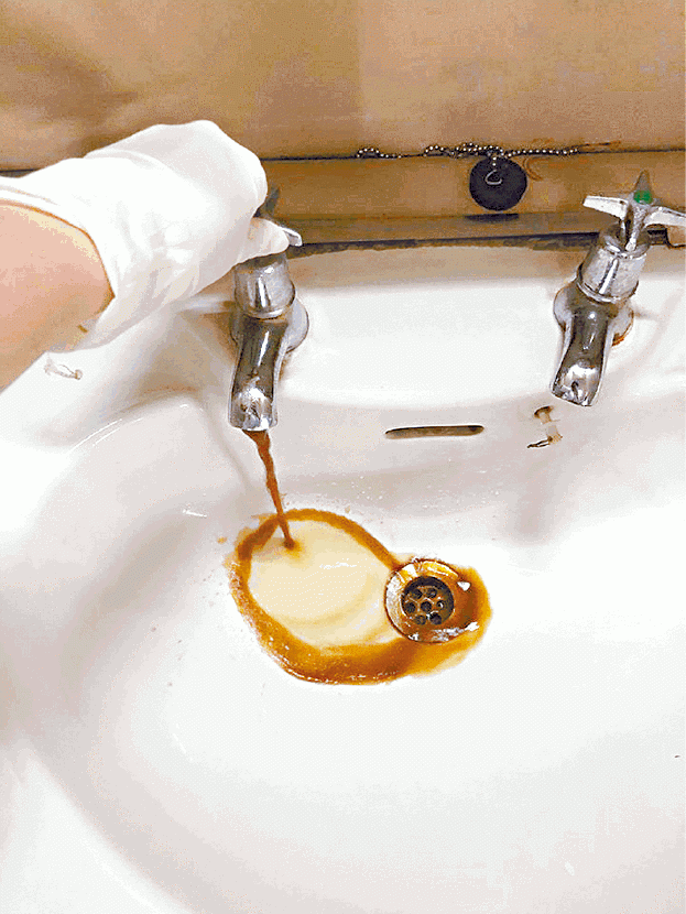 屯門富泰區議員何國豪向本報表示,日前收到屯門醫院醫護人員投訴,稱該院前日開始派房,惟宿舍環境差劣,地面有大片污迹,枱面及床褥佈滿灰塵。更離譜的是水龍頭嚴重生銹,開水10分鐘仍然流出黑色銹水,發出陣陣惡臭,狀況恐怖,有醫生和護士只好回家瞓廳。何國豪批評院方防疫亂糟糟,全無應變計劃,「首宗確診個案係上月底,當局理應一早就隔離安排做好準備,冇理由仲未執好個宿舍畀人住」。