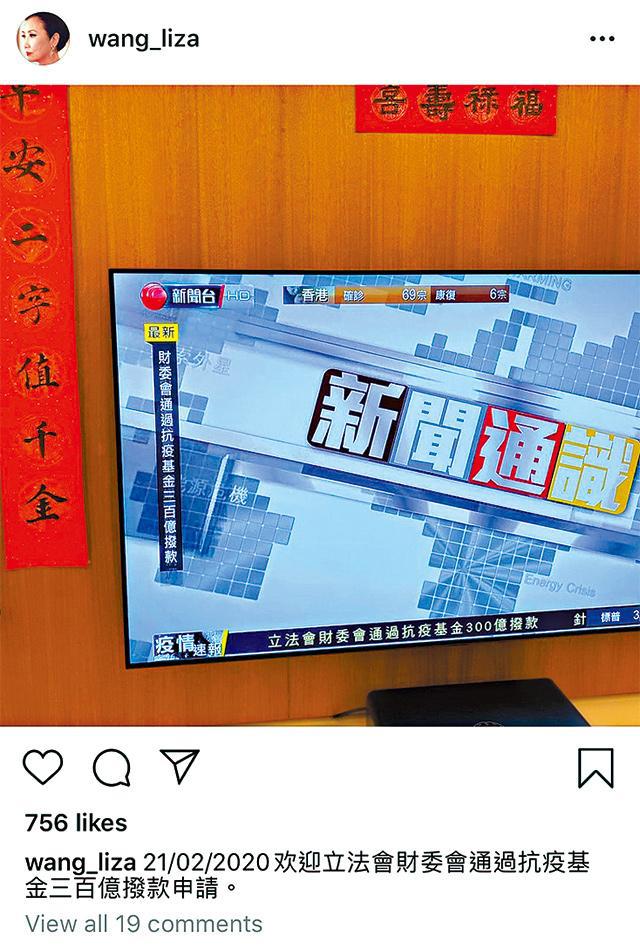 汪明荃(阿姐)前晚在Ig貼出翻攝有線電視新聞台畫面的照片,並留言:「歡迎立法會財委會通過抗疫基金300億撥款申請。」原來阿姐是想讚好抗疫基金通過撥款。不過網民的重點卻放在別處,指阿姐私下收看有線新聞,網民紛紛留言:「連阿姐都唔睇無綫新聞。」