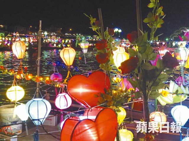 在1999年,越南會安古城被聯合國教科文組織(UNESCO)列入世界遺產。與運河相連的商埠大都會,街區內禁止任何汽車行駛,遊客能以單車、人力車、遊船,甚至步行等不一樣的方式來細看會安。經過歲月時光洗禮,一街古舊的建築大樓依舊矗立,只是現已改為商機處處的咖啡室、餐廳、畫廊與旅館等地。夜市與古城由秋盆河(Thu Bon River)相隔,每到華燈初上,就熱鬧萬分。秋盆河孕育了會安城的興盛,經常有小販在岸旁兜售寓意祝福的蓮花燈,和乘搭遊船河行程。在迷人夜色下,整個河畔輕泛綿延的繽紛燈籠觀光船,靠近岸邊仍在等待客人的七彩船隻,安靜地隨着浪花飄浮,含蓄地向每一位過路人擠眉弄眼。遠處河中央摩打聲「噠噠」作響,絲綢燈籠在夜空下穿梭往返,增添不少古樸的浪漫。除了遊客乘搭的觀光船外,河面上還飄着許多紅色如蓮花燈的小紙船。燈的中心裝上蠟燭,寫上心願後,用一根特製的竹竿放入河中隨波漂流。熱鬧而不喧嘩的會安古鎮,有一股獨特的氣質。我在夕陽西下前已來到,隨處遊走,在氣氛浪漫的咖啡店喝着蒸餾咖啡,等待夜幕降臨,靜觀古鎮日與夜的不同景致。