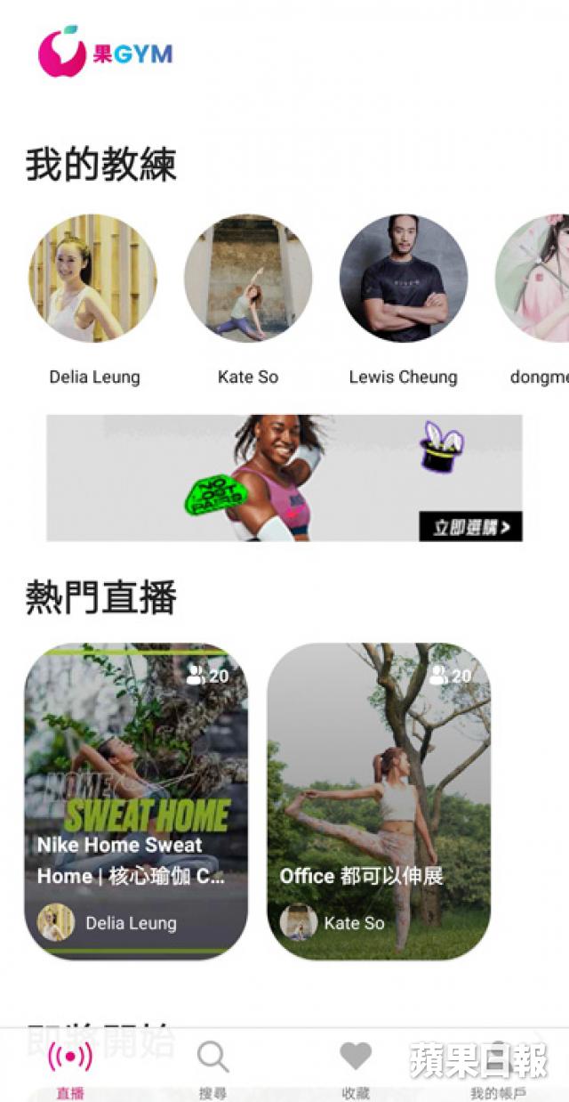 如果你都想跟教練一邊做gym一邊chit chat,記得裝《果GYM》app,【Nike Home Sweat Home】逢星期二晚8時星級教練開LIVE,提提你早些上去預留名額,下星期二見!