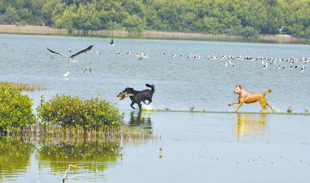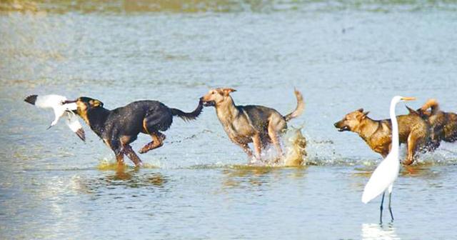 武漢肺炎撲襲全球,疫情源頭指向大陸吃野味風氣之時,台灣一批流浪狗進化成「兩棲部隊」,近來在高雄市的濕地以「團體戰」方式,獵捕蒼鷺、反嘴鷸(台稱反嘴鴴)或赤頸鴨等候鳥,甚至在濕地圍捕水中魚群。愛鳥人士形容,流浪狗群捕捉獵物的方式前所未見,南部濕地作為黑面琵鷺等瀕危候鳥的棲息地,擔心流浪狗的不斷增加,將危害保育鳥類,成為生態殺手。