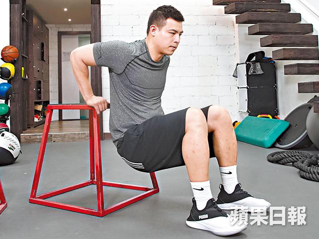 揀選一張穩陣的凳,然後背貼着凳邊,雙手按着凳的兩角,雙腳可以略為屈曲,然後做出坐下動作,每次做12到15下為之一組,每次可以做4到5組,雙腳越放平,難度越高,此動作針對鍛煉上身肌肉。