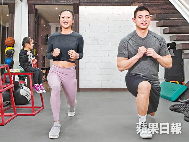 弓箭步是雙手放胸前,然後前後換腳跳約40秒。深蹲如同坐無影凳,同樣做約40秒。波比跳的難度相對前兩個動作高,動作近似掌上壓,手掌按地,配合雙腳前後跳,每組跳12次,男仔如應付到的話,中間可以加插做多一個掌上壓,可改善肌肉耐力,屬高難度體能挑戰。練熟三個動作,就可以三個為之一組連貫做。
