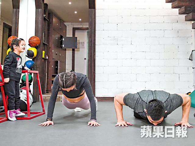 健身教練趙勁皓(King)和太太盧頌之(DaDa)平日會帶兩歲多囡囡趙安嵐(乳名踢踢)到公園玩樂「放電」,但爆發武漢肺炎以來,全港停課,母女都減少外出。不過踢踢的精力依然無限,King和DaDa會跟囡囡做親子gym,King說:「踢踢好鍾意做運動,有時DaDa喺屋企做work out,踢踢會學佢做。踢踢冇時停,好活躍,我哋會同佢一齊喺屋企做吓簡單運動,等佢手腳都郁吓,因為佢仲好細,有時唔會聽指令,又好難限住佢每個動作做幾多下,唔似大人要有一定運動量,有時睇睇吓電視都可以同佢玩吓。」